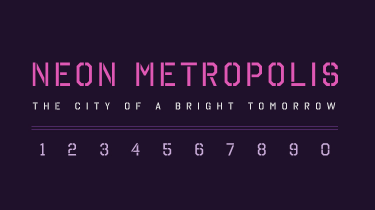 Hello Denver Display is another stroked-based font perfect for mimicking neon-lighting in cyberpunk and video-game inspired sci-fi novels.